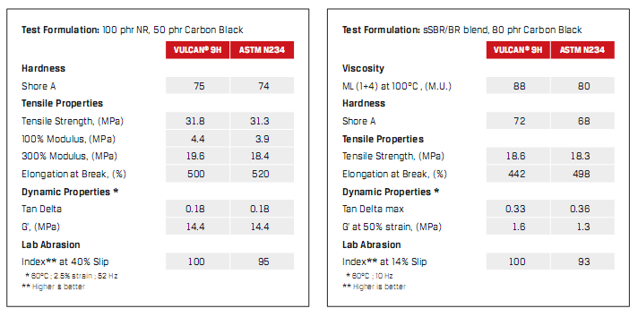 炭黑N234與VULCAN-9H在不同測(cè)試條件下的數(shù)據(jù)對(duì)比表: